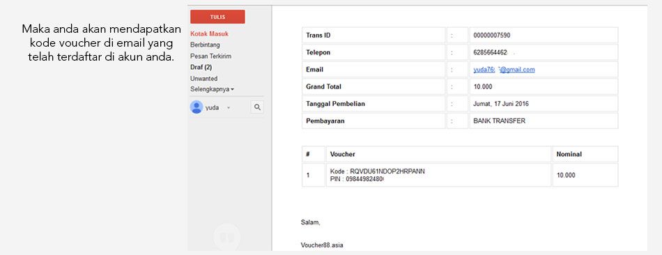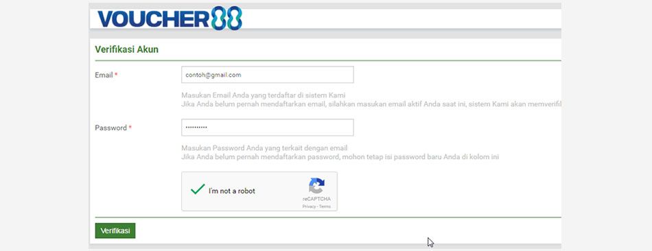 Tahap 02Masukkan Email dan Password. Pastikan email anda aktif, karena Seluruh transaksi di 88voucher menggunakan Email.Beli Voucher
