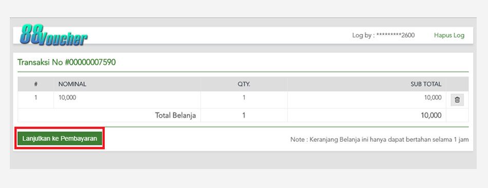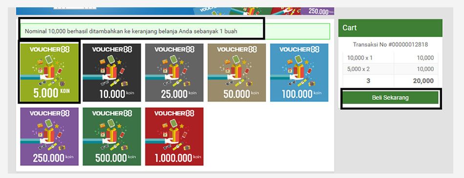Tahap 04Setelah anda mengkonfirmasikan password, silahkan anda pilih nominal voucher yang anda inginkanBeli Voucher